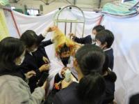 そして、コサージュ作りが終わった後、体育館で恒例の仮装大会がありました