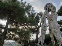 西門から入ったところにある「健児の像」もきれいに塗り直してくれました。