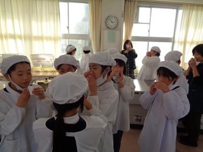 ①の出汁のみを味わった子どもたちは「うすい」と言っていたものの、②と③を飲み比べることで、出汁のパワーに感動していました。出汁によって、味の「深さ」を感じ取ることができました。3学期に自分たちでつくる『味噌汁作り』で学びを生かしていきたいですね。