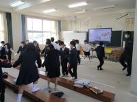 音楽の授業は「ファランドール」の旋律を変えながら、リズムに合わせて踊っています。