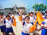今年もフラッグ運動をする予定です大きなフラッグを一生懸命振って、
