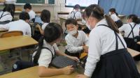 タブレットを用いて、文章を並べ替える活動を通して、「まず」や「つぎに」、「それから」等のことばの大切さについて学んでいました。